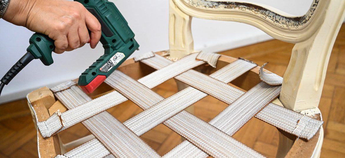Prvo ćete učiti kako da rastapacirate stolicu na kojoj radite i pripremite je za dalje korake, da koristite alatke za rastapaciravanje, ali i pištolj za topli lepak, stolarska klešta, bušilicu i heftalicu.