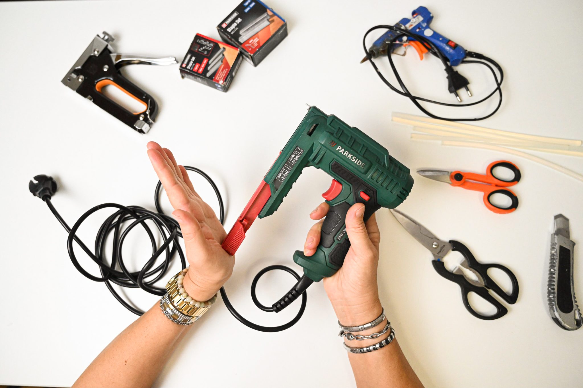 Da biste uopšte krenuli u tapaciranje morate da imate određene alate. Od alata ćete koristiti: pištolj za heftanje ručni (od 500 din. doo 3.000 din) ili na struju (oko 4.000 din), sa municijom (1.000 komada košta 100 din), zatim pištolj za topli lepak (350 din) sa patronama (20 din. komad).